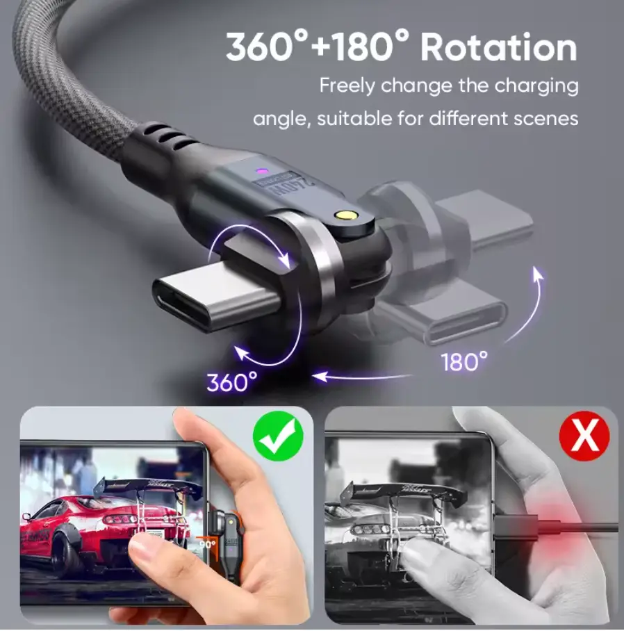Enjoy 360° + 180° pivotable heads that let you charge comfortably from any angle. No more strained ports, awkward bends, or broken cables.